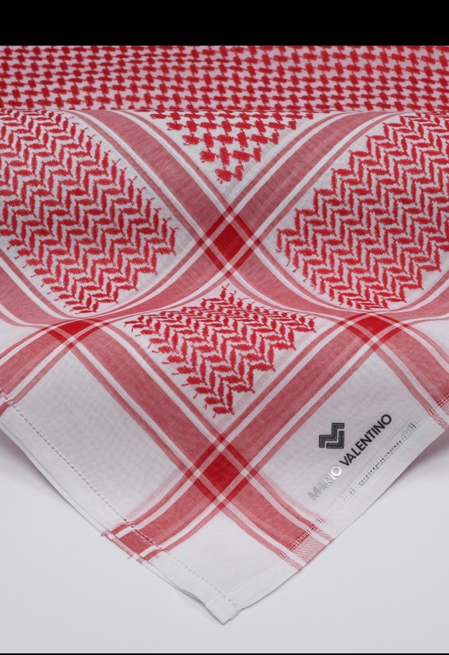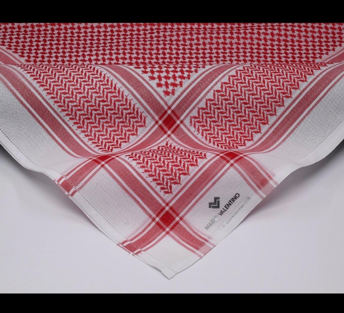 شماغ ماريو فلنتينو MVK1 بتصميم أحمر وأبيض كلاسيكي، مصنوع من قطن فاخر يمنحك الراحة والأناقة طوال اليوم، مع ثبات ألوان وجودة تصنيع عالية تناسب جميع المناسبات.